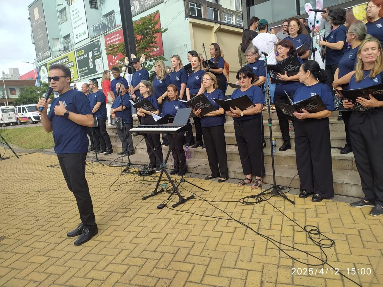 No último dia 12 de abril de 2025, o Coral da Orquestra Sinfônica de Lages, através do projeto Soltando a Voz – 2ª edição, realizou uma apresentação inesquecível na Praça João Costa, reunindo diversas pessoas em um momento de arte, fé e emoção.